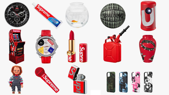 Supreme tiếp tục khiến fan phải “phổng mũi” tự hào với sự sáng tạo không biên giới. Các phụ kiện độc đáo thuộc bộ sưu tập Thu – Đông 2020 được thương hiệu hợp tác cùng Jacob & Co, Mortal Kombat, Chucky… thậm chí là kem đánh răng Colgate.