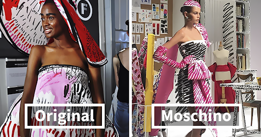 Tháng 11/2017, NTK người Nauy, Edda Gimnes đã gặp mặt một nhân viên cấp cao làm việc cho Moschino ở New York. Ở buổi hẹn đó, cô đã vui vẻ chia sẻ những ý tưởng cùng các bản vẽ thiết kế dành cho BST SS 2016 của cô. Nhưng Edda lại không ngờ đến chuyện sau này Moschino ngang nhiên đưa “cảm hứng” đó lên BST SS 2019 của họ.