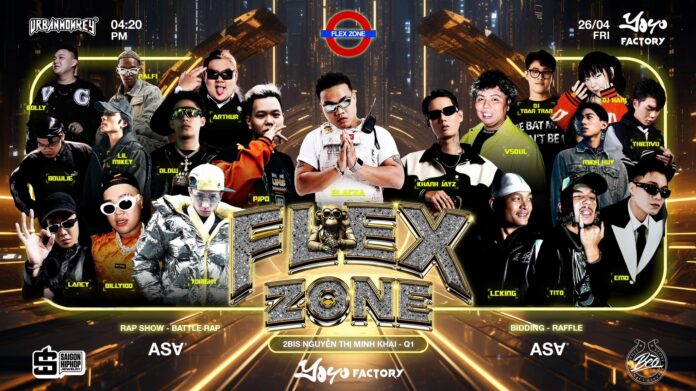 FLEX ZONE Season 1 là sự kiện Battle Rap quy mô lớn được tổ chức bởi thương hiệu Urban Monkey$ vào ngày 26/04/2024 tại TP.HCM vừa qua. Đến với show diễn lần này, có sự góp mặt của 22 nghệ sĩ (artists) tài năng trong cộng đồng Rap/Hip Hop Việt Nam như: Blacka, Pjpo, Khánh Jayz, Vsoul, LC King, EMD, Arthur, Dlow, Billy100, 7dnight từ Hàn Quốc về, Minh Huy, Lancy; DJ: Toan Tran & Hani và khách mời đặc biệt đầy bất ngờ trong chương trình là: Keisha và Vinh Râu.