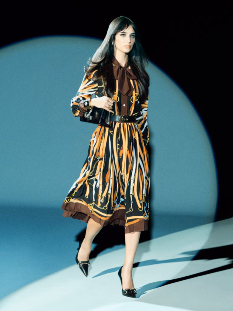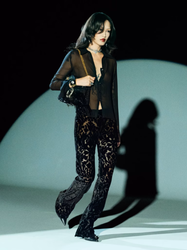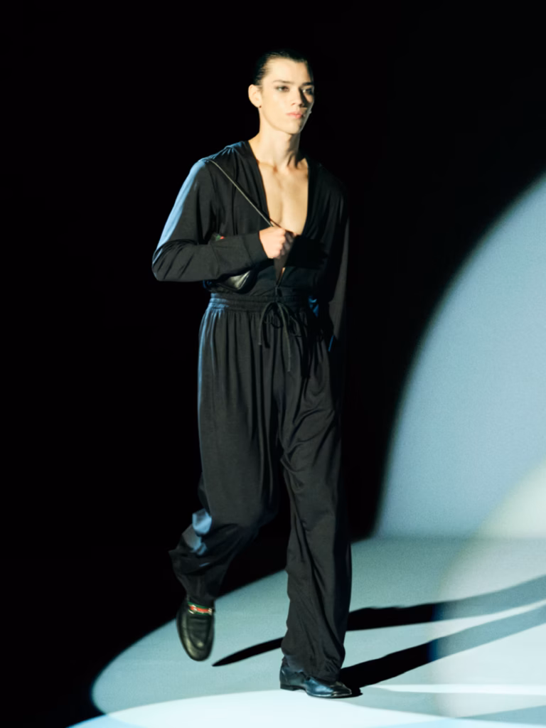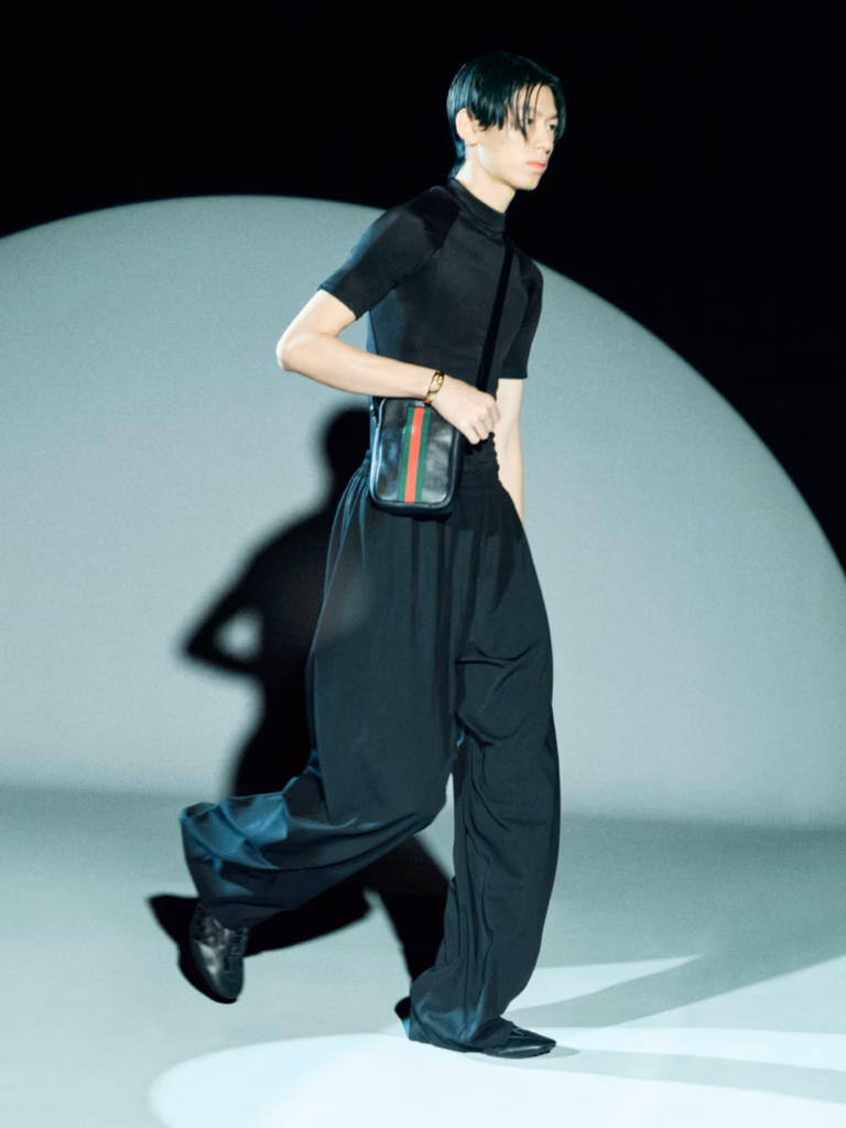 Demna đã đi đưa bản thân anh đi sâu vào di sản và kho lưu trữ của thương hiệu, nơi mà anh tìm thấy “điểm giao” của bản thân mình mà vị giám đốc sáng tạo đương nhiệm – Tom For, những “mật mã” thời trang lịch sử, được lọc qua một lăng kính sắc lạnh và tối giản đặc trưng của cả hai. Thật vậy, có tể xem Gucci Pre-fall 2026 là một cuộc đối thoại giữa quá khứ và thực tại—nơi sự lãng mạn phồn hoa bị tước bỏ, để lại những đường nét tinh khiết, mang tính biểu tượng của cả Demna và Tom Ford.