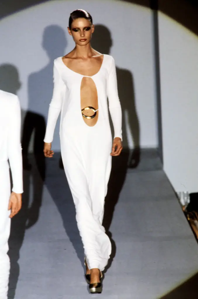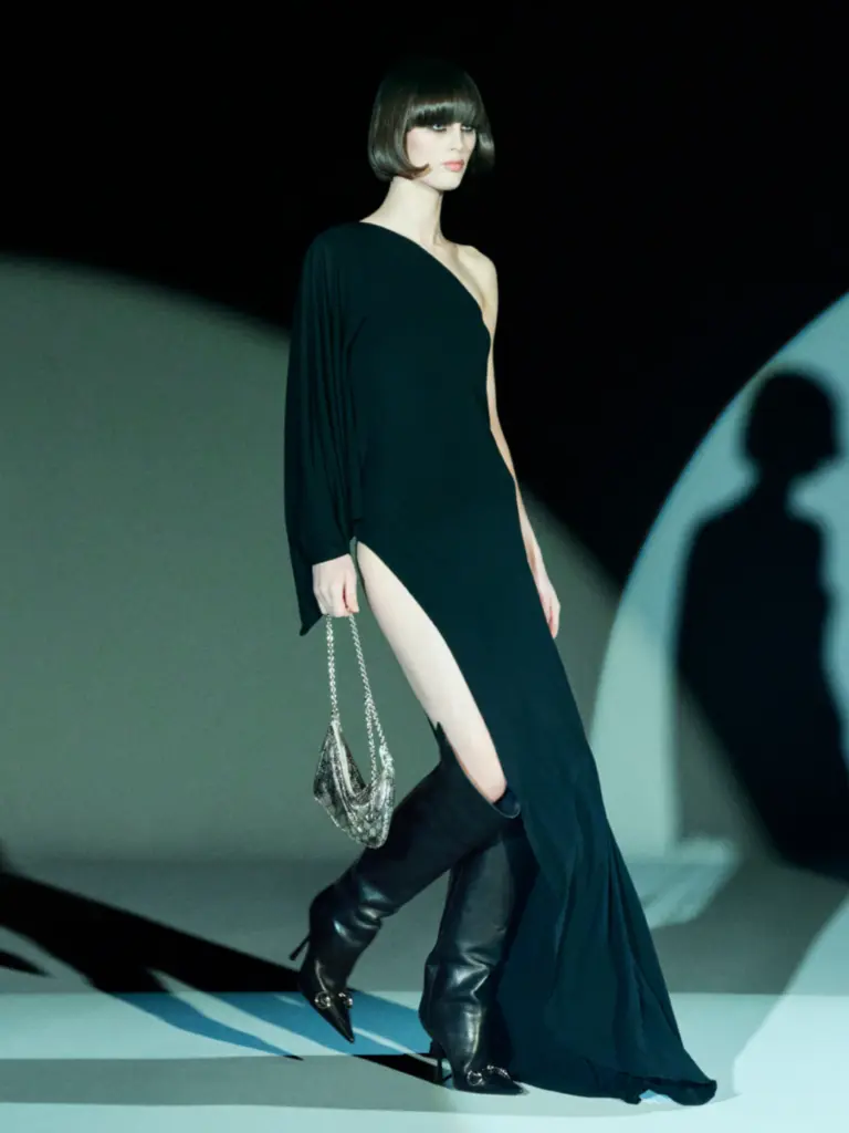 Sự xuất hiện của những bộ suit lụa, những chiếc váy ôm sát, và những đôi giày mũi nhọn gợi nhớ không khí kịch tính của năm 1996, nhưng chúng được Demna làm cho thực tế hơn, tinh giản hơn. Thật vậy, Sự gợi cảm mới của Demna không còn là khoe da thịt, mà là sự tự tin thoát ra từ đường cắt hoàn hảo, từ chất liệu được thiết kế để ôm lấy cơ thể một cách tinh tế. Đây là phiên bản khác của Tom Ford sắc lạnh hơn, góc cạnh hơn, và đậm chất Grunge , Edgy hơn.