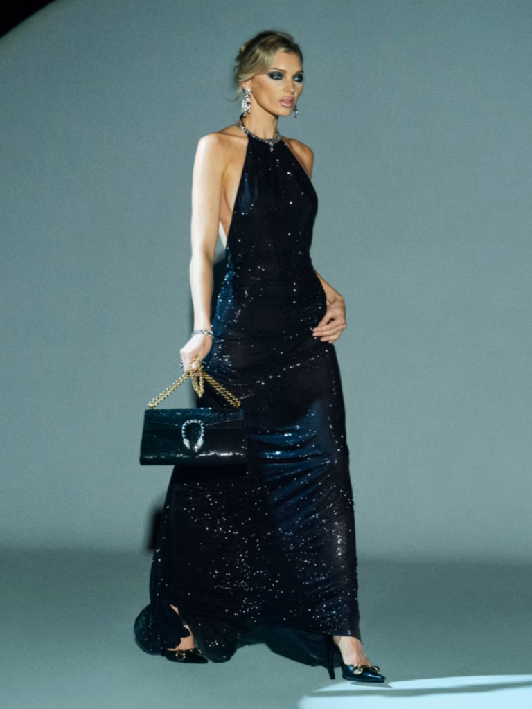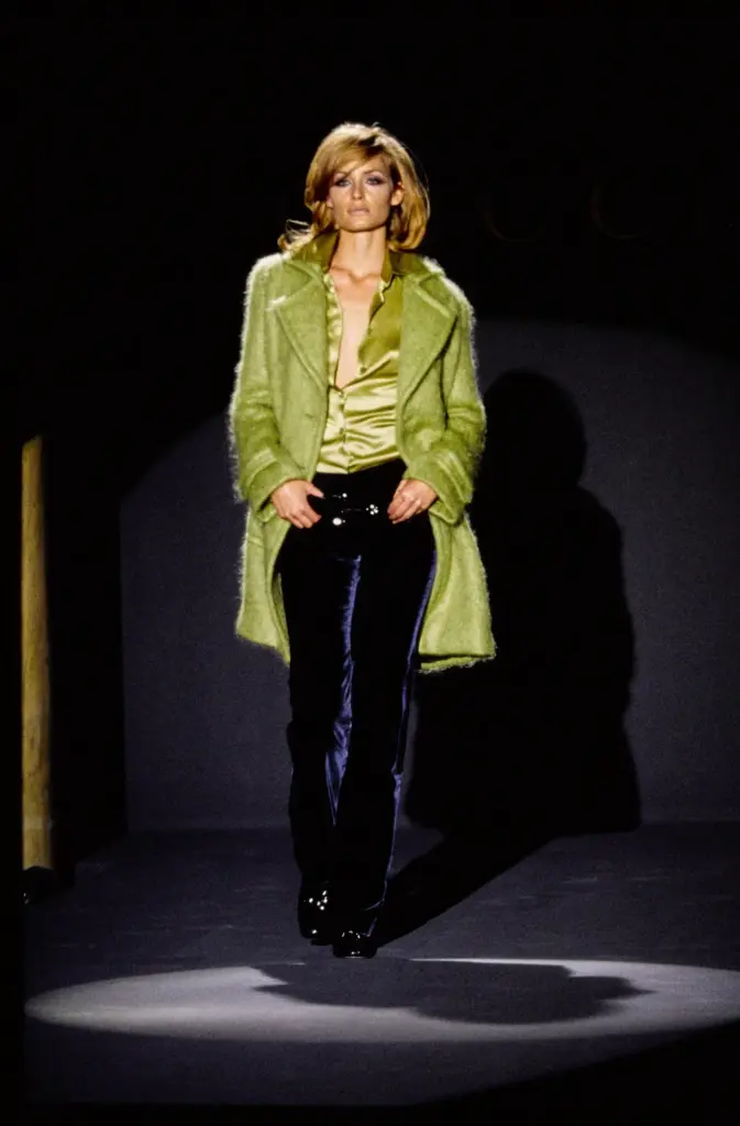 Gucci Pre-fall 2026 hay “Generazione Gucci” được giới phê mộ điệu đánh giá là “tái bút” viết tiếp lên di sản rực rỡ nhất của nhà mốt, đặc biệt là kỷ nguyên Tom Ford. Nếu Ford định nghĩa Gucci bằng sự gợi cảm bùng nổ, táo bạo và phô trương, Demna đã tiếp thu tinh thần đó và lọc nó thành một dạng gợi cảm bị tiết chế.