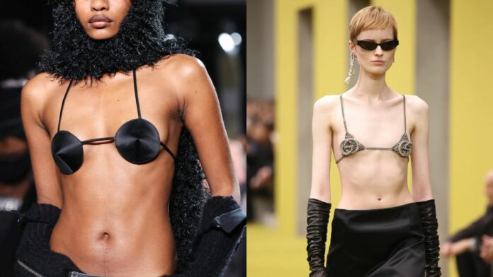 Xu hướng quần áo chiếm lĩnh tuần lễ thời trang năm nay không thể không nhắc đến những chiếc áo lót “size mini”. Nhà mốt Gucci mới đây đã mang trở lại chiếc áo ngực siêu nhỏ lên sàn diễn Thu/Đông 2023. Một thương hiệu khác cũng trình làng thiết kế áo ngực “mặc như không mặc” đó là RTW Vaquera. Các thiết kế nhanh chóng gây chú ý bởi chúng gợi nhiều liên tưởng tới chiếc áo nổi tiếng năm nào của Chanel.