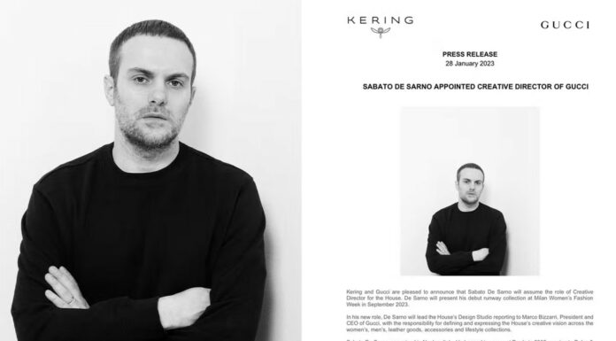 Thứ Bảy ngày 28/1, Gucci và tập đoàn Kering chính thức bổ nhiệm Sabato De Sarno vào vị trí Giám đốc sáng tạo của thương hiệu này.