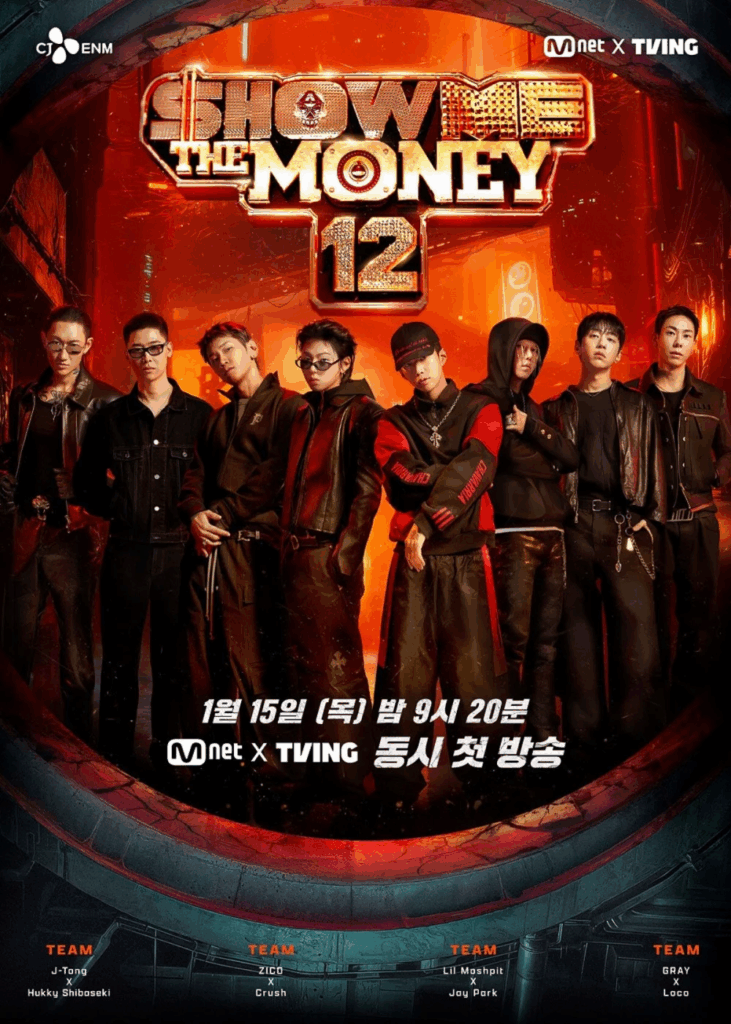 Show Me The Money mùa thứ 12 sẽ phát sóng tập đầu tiên vào ngày 15 tháng 1 năm 2026, lúc 9:20 tối (giờ Hàn Quốc). Dàn producer mùa này sẽ gồm các cái tên sau: