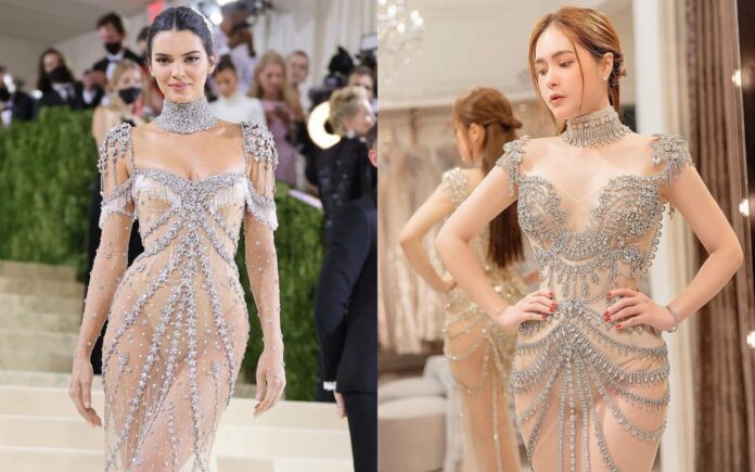Cụ thể, Đoàn Di Băng vừa đăng tải lên mạng xã hội hình ảnh chiếc đầm được cô mặc trong bữa tiệc sinh nhật của mình. Và không quá khó để nhận ra, chiếc đầm cùng vòng cổ này rất giống với một trong những bộ custom-made nổi tiếng nhất năm 2021 vừa rồi – chiếc đầm và vòng cổ Kendall Jenner đã mang ở Met Gala 2021 do nhà mốt Givenchy thiết kế.