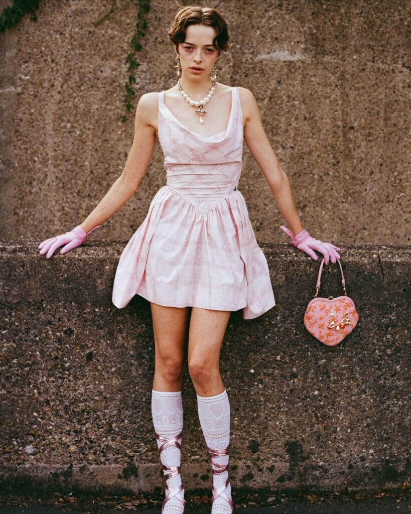 Năm 2025 không chỉ là một cột mốc, mà là một tiếng vọng dội ngược đầy uy lực từ quá khứ, đánh dấu sự tái hợp thượng đỉnh giữa di sản huyền thoại của Vivienne Westwood và vũ trụ cảm xúc dữ dội của bộ Manga kinh điển Nana (tác giả Ai Yazawa). Nhân dịp kỷ niệm 25 năm ra mắt bộ truyện tranh đình đám, bộ sưu tập là lời tri ân cũng như là hành trình khai phóng phong cách của hai nhân vật chính – Nana Komatsu và Nana Osaki. Vẻ nữ tính tuyệt đối của Nana Komatsu sắc hồng pastel, trang sức ngọc trai và phụ kiện họa tiết hoa; và nét punk cá tính của Nana Osaki với bộ đồ đôi vải tartan Lochcarron màu đỏ, corset và choker da.