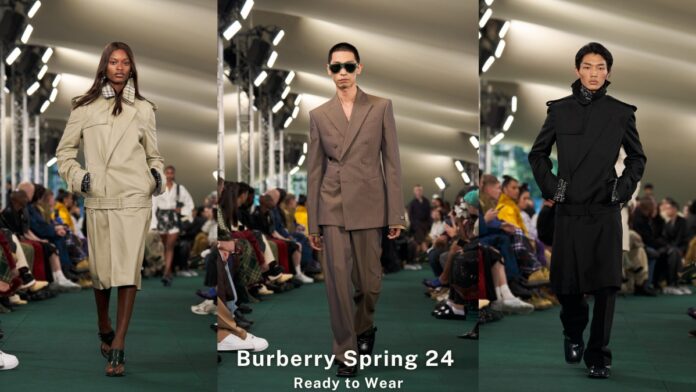 Mở đầu Burberry Spring 2024 RTW là không khí quây quần bên gia đình được tái dựng trong công viên ở Highbury Fields cho buổi ra mắt BST thứ hai của NTK Daniel Lee. “Bởi vì London được tạo thành từ các khu dân cư. Tôi nghĩ thật tốt khi đưa mọi người đến những nơi họ không nhất thiết phải đến, đó chính là những khu dân cư bên ngoài các địa điểm du lịch nổi tiếng.” – Daniel Lee nói trong lần phỏng vấn vào tuần trước.