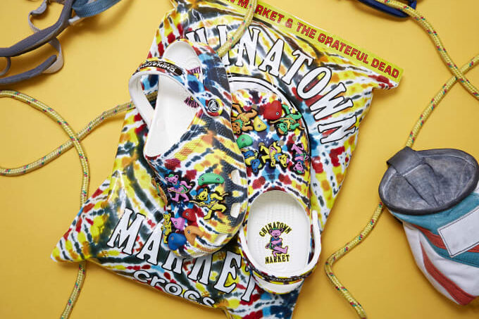 Sau một đợt cháy hàng nhanh chóng vào năm 2020, hợp tác giữa Chinatown Market và Crocs — “Grateful Dead” Classic Clog — đã chính thức quay trở lại. Đây là 2 thương hiệu luôn có nhu cầu hợp tác với các ông lớn khác, không chỉ riêng China Town Market đã quá quen thuộc với các bản collab cùng Converse. Crocs trong năm 2020 vừa rồi cũng đã collab với rapper đình đánh Post Malone và “Drew House” của Hoàng tử nhạc Pop Justin Bieber cũng trên mẫu Classic Clog của họ.