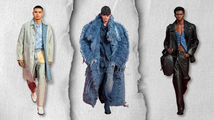 Martens đã tận dụng chủ lực denim – denim jersey, denim dệt kim, và denim xếp nếp và denim tua rua. Và sau đó là logo Diesel “D” của như một cửa sổ táo bạo trên “đống bùi nhùi”.