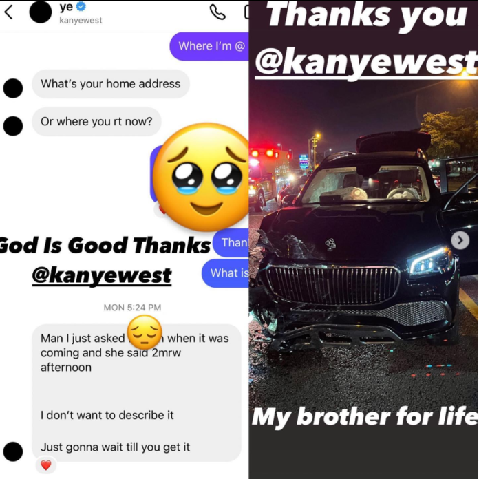 “Yo, Ye vừa mua cho tôi một chiếc Maybach mới đó bồ! Ye biết tôi đã đâm hỏng chiếc Maybach của mình hai ngày trước nên đã mua cho tôi một chiếc Maybach truck mới. Cái quái gì đang xảy ra ngay bây giờ… Chắc tôi khóc mất” – Bari chia sẻ trên story Instagram.