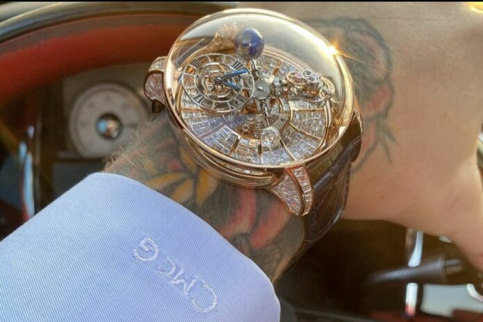 Mặc dù anh đang bận rộn chuẩn bị cho giải UFC 257 cuối tháng tới đây, nhà cựu vô địch UFC đã khoe trên Instagram món phụ kiện mới tậu của anh ấy: một chiếc đồng hồ đính kim cương đến từ thương hiệu danh tiếng Jacob & Co. Một đại diện của hãng kim hoàn xác nhận rằng McGregor đã mua chiếc Đồng hồ Astronomia Baguette, được làm bằng vàng hồng với giá 1 triệu đô la ($1,000,000). Sản phẩm có cấu trúc bốn vệ tinh quay quanh trục, bao gồm 342 viên kim cương cắt hình baguette được đặt vô hình trên nền của mặt số và thêm 80 viên kim cương cắt hình baguette được đặt vô hình trên 4 chân cạnh.