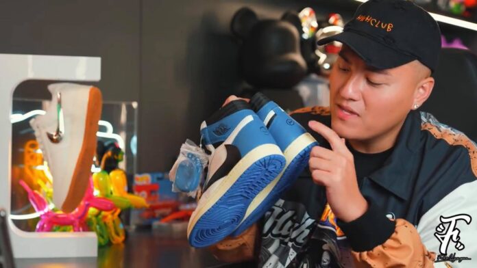 Youtuber Fabo Nguyễn trên tay đôi fragment design x Travis Scott x Air Jordan 1 High OG “Military Blue” vừa mới tậu.