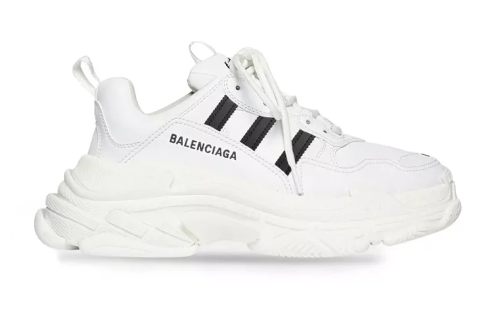 Gần đây, cộng đồng thời trang trên mạng xã hội Instagram chia sẻ hình ảnh về một đôi giày Balenciag x adidas từ tài khoản @apolloluo1976. Xét về hình dáng, đôi sneaker này có bộ đế “hầm hố” quen thuộc từ mẫu Triple S cùng phần upper như một đôi Superstar từ adidas. Thậm chí, phối màu chủ đạo còn là đen với trắng nhàm gợi đến đôi giày “Mũi Sò” này. Từ tấm hình trên, người ta đưa ra giả thuyết về việc adidas sẽ collab cùng Balenciaga trong tương lai.