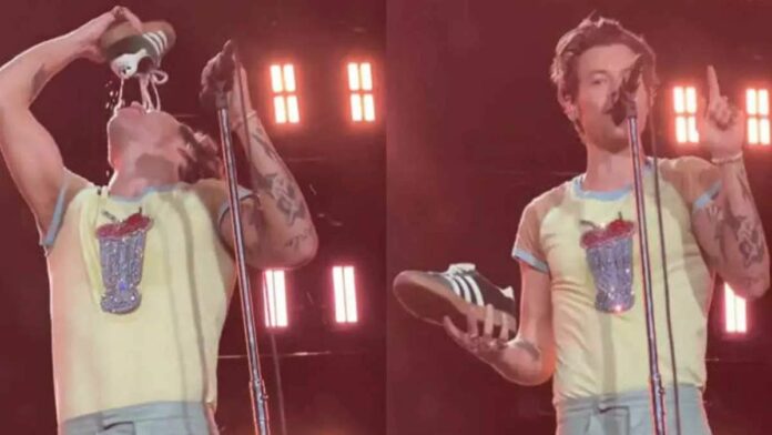 Vào đêm nhạc tại Australia tối 20/2, Harry Styles đã đổ rượu vào giày của mình và uống cạn ngay trên sân khấu.